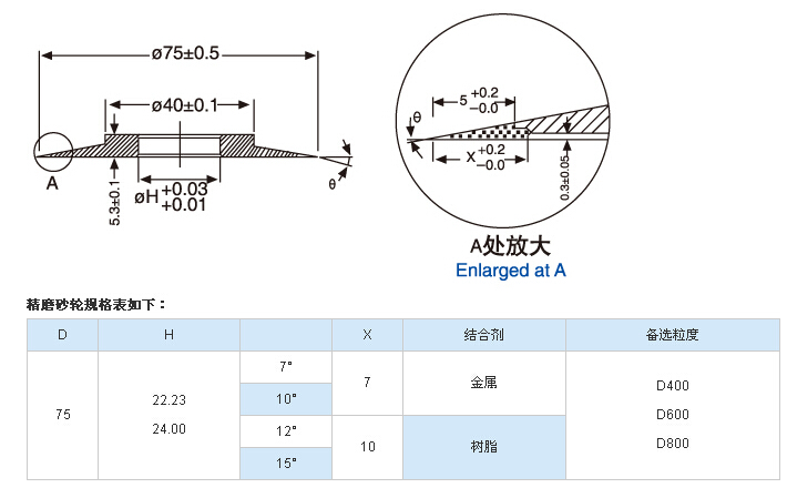 精磨砂轮尺寸图参数展示